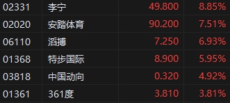 受益于近日618利好,港股體育用品股持續(xù)走強(qiáng),李寧(49.8, 4.05, 8.85%)漲近9%,安踏漲7.51%。消息方面,天貓2023年618第一波(5月31日-6月3日)相關(guān)榜單顯示,在運(yùn)動(dòng)戶外品牌人氣榜中,李寧、Nike、安踏分別位列前三,進(jìn)入前十的還有361°、特步等。