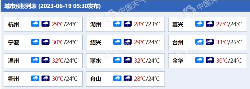 后天,浙北地區(qū)多云到陰,午后局部有陣雨或雷雨;浙中南地區(qū)陰有陣雨或雷雨。 以上有雷雨地區(qū)局部可伴有短時暴雨和個別8-10級雷雨大風。