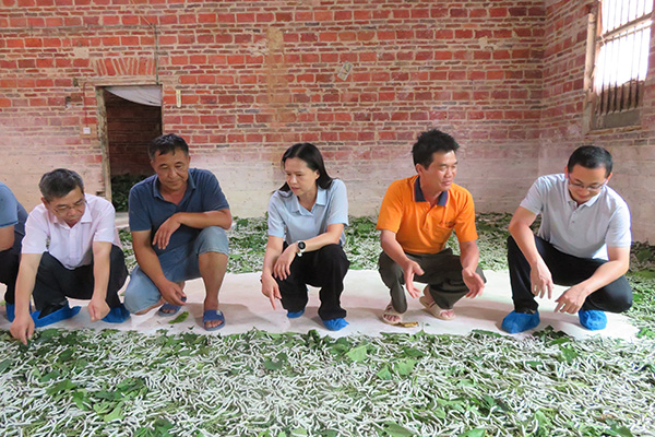 在思恩鎮(zhèn)中舊村現(xiàn)場指導(dǎo)大蠶飼養(yǎng)
