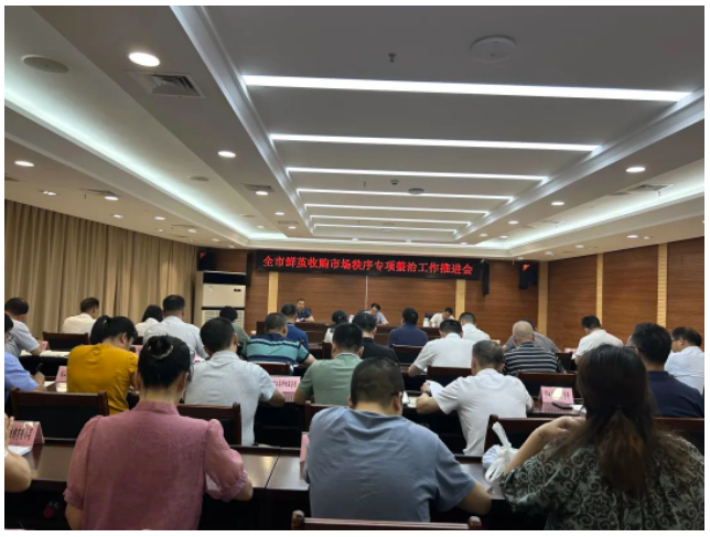 為進(jìn)一步加強(qiáng)河池市鮮繭收購市場管理工作,推動桑蠶繭絲綢產(chǎn)業(yè)健康高質(zhì)量發(fā)展,今日(6月19日),河池市召開全市鮮繭收購市場秩序?qū)m?xiàng)整治工作推進(jìn)會。政府相關(guān)部門和全市蠶繭收購單位代表60余人參加會議。