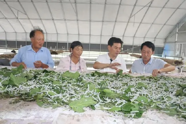 指導(dǎo)蠶農(nóng)養(yǎng)蠶