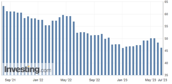 日內(nèi)標(biāo)普全球公司公布的法國、德國和歐元區(qū)的PMI數(shù)據(jù)全線下滑,意味著該地區(qū)的經(jīng)濟(jì)活動接近停滯,復(fù)蘇勢頭可能已經(jīng)結(jié)束。另外剛公布的美國6月份制造業(yè)PMI初值也明顯不及預(yù)期,較上月跌了2個點(diǎn)至46.3。