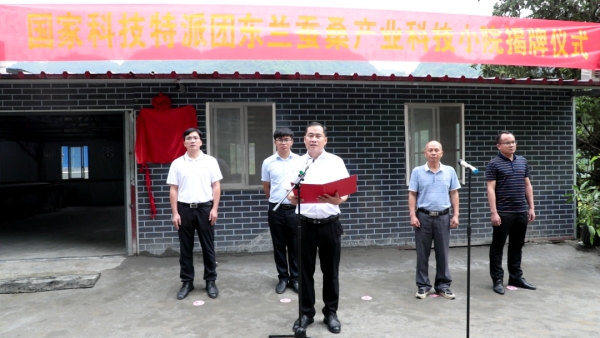 縣委常委、組織部部長韋寧,國家科技特派團廣西東蘭團團長兼蠶桑產(chǎn)業(yè)組組長、國家蠶桑產(chǎn)業(yè)體系河池綜合試驗站站長、高級農(nóng)藝師廖先謀共同為國家科技特派團蠶桑產(chǎn)業(yè)科技小院揭牌。