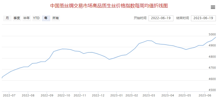高品質生絲指數(shù)上,本周正值端午小長假,協(xié)作單位所報成交一般。高品質生產協(xié)作單位內,品牌溢價本身就高的企業(yè)基本維持原價,品牌溢價一般的企業(yè)成交價格整體有所上調,也有部分企業(yè)仍舊維持原價和客戶進行磨合。本周高品質生絲指數(shù)上漲0.62%。