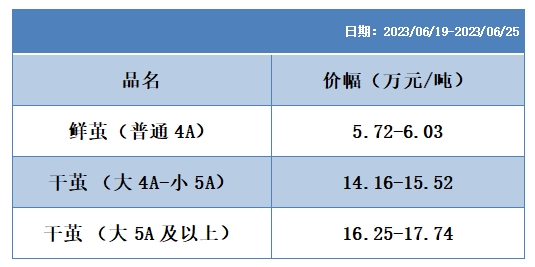 根據(jù)本周蠶繭報價按照指數(shù)方案形成的基準品價格區(qū)間