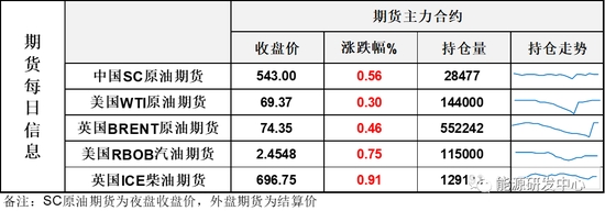 【1】WTI主力原油期貨收漲0.21美元,漲幅0.3%,報69.37美元/桶;布倫特主力原油期貨收漲0.34美元,漲幅0.46%,報74.35美元/桶;INE原油期貨收漲0.56%,報543元。