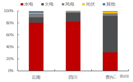 圖2:西南地區(qū)主要省份電力供應(yīng)結(jié)構(gòu)