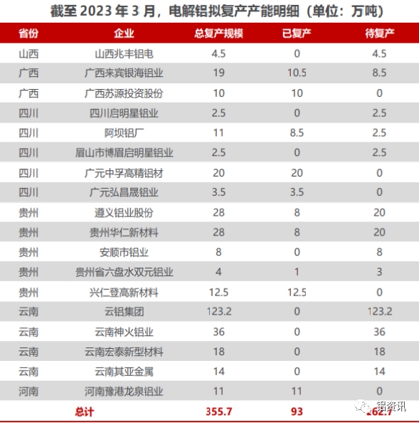 圖3:國內(nèi)電解鋁企業(yè)擬復(fù)產(chǎn)產(chǎn)能明細