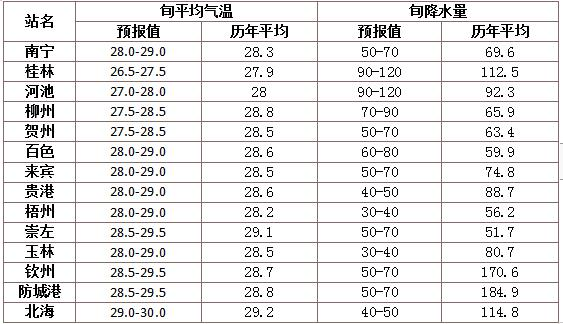 全區(qū)旬平均氣溫、旬降雨量預(yù)報(bào)如下: