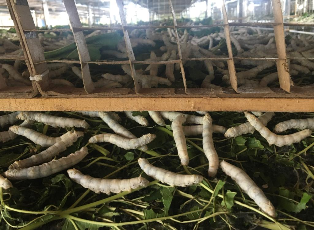 在標(biāo)準(zhǔn)化養(yǎng)蠶車間內(nèi),五齡期大蠶正在啃食桑葉