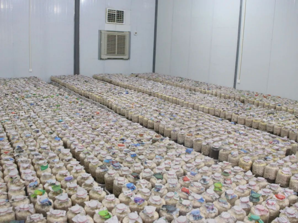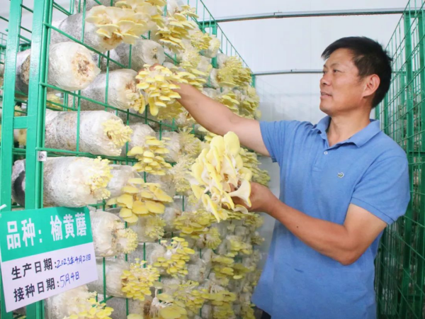 清晨7點(diǎn),工作人員便開始忙碌起來,他們將這一朵朵“傘”狀的菌菇小心翼翼地采摘下,整齊碼放進(jìn)筐里,不一會兒,幾大筐菌菇便采收完成?!皬娜ツ?0月份開始修建菌菇栽培房,已經(jīng)育出了2萬棒菌包。今年6月,1萬棒菌包被投放進(jìn)栽培室,目前已有8000余棒菌包開始出菇,這些菌菇不僅長勢好,收益也不錯(cuò)?!敝薪z天成桑枝菌生產(chǎn)研發(fā)中心負(fù)責(zé)人錢向陽手里拿著剛剛采摘下來的桑枝菌,滿臉洋溢著喜悅。