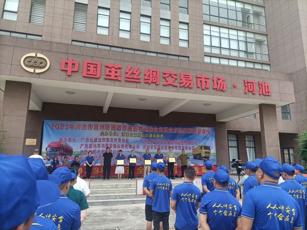2023年6月是第22個(gè)“安全生產(chǎn)月”,為貫徹落實(shí)相關(guān)工作部署,進(jìn)一步檢驗(yàn)和完善《應(yīng)急救援預(yù)案》的實(shí)用性和有效性,由廣西河池市宜州區(qū)交通運(yùn)輸局主辦、廣西桂通絲綢物流有限公司等五家公司承辦、廣西嘉欣絲綢有限公司和中國(guó)人保宜州分公司共同協(xié)辦的宜州區(qū)道路普通貨物運(yùn)輸企業(yè)聯(lián)合應(yīng)急救援預(yù)案演練活動(dòng)于今日(2023年6月30日)在廣西嘉欣絲綢園內(nèi)舉行并圓滿完成。本次活動(dòng)還特別邀請(qǐng)了廣西恒業(yè)、廣西嘉聯(lián)、宜州宏基等多家繭絲綢企業(yè)共同參與。