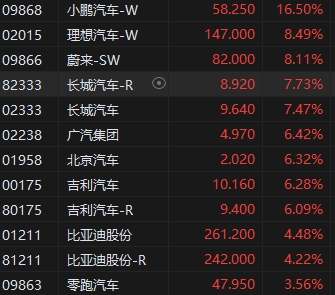 汽車股集體上漲,“蔚小理”領(lǐng)漲,小鵬汽車漲超16%領(lǐng)銜,蔚來、理想汽車漲超8%,長城汽車(9.64, 0.67, 7.47%)、吉利汽車(10.16, 0.60, 6.28%)、比亞迪(261.2, 11.20, 4.48%)等跟漲。消息面上,6月新勢力銷量亮眼,7大核心車企銷量達132,876輛,同比增41%,環(huán)比增10%;理想、廣汽表現(xiàn)亮眼,蔚來邊際改善。排產(chǎn)端,7月環(huán)比增10%,基本恢復(fù)至22Q4高點水平。此外,中國汽車流通協(xié)會指出,中國汽車流通協(xié)會指出,綜合預(yù)計,6月乘用車終端銷量在185萬輛左右,環(huán)比小幅上升,綜合上半年汽車市場狀況及經(jīng)銷商對下半年車市的判斷,預(yù)計全年乘用車零售量依然有望實現(xiàn)同比正增長。