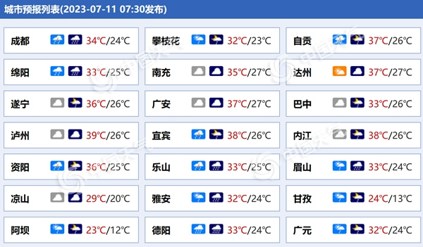 四川各城市天氣預(yù)報(bào)