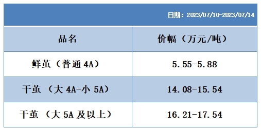 根據(jù)本周蠶繭報價按照指數(shù)方案形成的基準(zhǔn)品價格區(qū)間