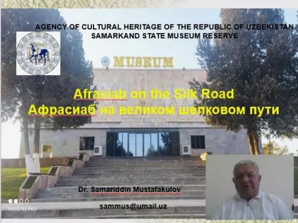 薩馬里丁·穆斯塔福庫洛夫解讀了絲路上的阿弗拉西阿卜宮殿遺址及壁畫。壁畫描繪了在撒馬爾罕王拂呼縵治時(shí),赤鄂衍那、中國和印度使節(jié)帶著新娘和貢物到訪的場景,以及拂呼縵到場歡迎使節(jié)的場景,體現(xiàn)了絲路上的東西文明交流。