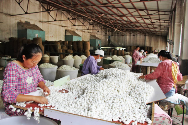 昭通市長江絲綢有限公司是一家集種桑養(yǎng)蠶、蠶繭收烘、生絲加工及銷售于一體的企業(yè),形成市場牽龍頭、龍頭帶基地、基地連農(nóng)戶的蠶桑產(chǎn)業(yè)發(fā)展新格局。公司始建于1995年,注冊資金3000萬元,總資產(chǎn)1.72億元,公司下設(shè)9個蠶桑技術(shù)服務(wù)分公司、1家絲廠,擁有國內(nèi)先進的自動繅絲生產(chǎn)線12組4800緒,年生絲加工能力達400噸。2022年,公司收購鮮繭779噸,蠶農(nóng)實現(xiàn)收入3586.5萬元。