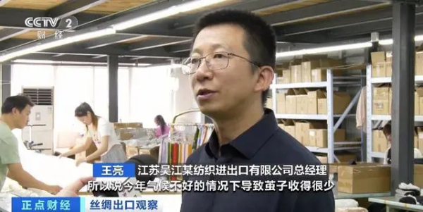 江蘇吳江某紡織進出口有限公司總經(jīng)理 王亮:養(yǎng)蠶是天然的,有點像靠天吃飯。所以今年氣候不好的情況下繭子收得很少,原料價格從5月份到7月份漲了百分之十幾。