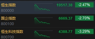 8月2日消息,港股三大指數(shù)集體下挫,截至收盤,恒生指數(shù)(19517.379, -493.74, -2.47%)跌2.47%,報(bào)19517.38點(diǎn)再度跌破2萬(wàn)點(diǎn),恒生科技指數(shù)(4388.77, -149.33, -3.29%)下跌3.29%,國(guó)企指數(shù)跌2.70%。盤面上,核心科技股跌幅明顯,嗶哩嗶哩、百度、快手、美團(tuán)均跌超3%;汽車股表現(xiàn)萎靡,此前因大眾7億美元入股而大漲的小鵬汽車大跌超14%;醫(yī)藥板塊延續(xù)跌勢(shì),醫(yī)藥反腐風(fēng)暴仍在進(jìn)行中;內(nèi)房股多數(shù)走低,物管股強(qiáng)勢(shì),碧桂園(1.46, 0.00, 0.00%)服務(wù)飆漲近18%領(lǐng)銜;水泥股逆勢(shì)走高。