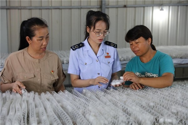 為精準對接企業(yè)需求,國家稅務(wù)總局上林縣稅務(wù)局主動深入企業(yè)了解企業(yè)生產(chǎn)規(guī)模和經(jīng)營情況,并通過稅收大數(shù)據(jù)分析,摸清行業(yè)特點,為企業(yè)量身制定“一企一策”政策匯編,滿足企業(yè)“個性化”需求。同時,依托鄉(xiāng)村資源優(yōu)勢,聚集地方資源要素,培育生產(chǎn)、加工、品牌、電商于一體的產(chǎn)業(yè)集群,把就業(yè)崗位更多留在鄉(xiāng)村,打造鄉(xiāng)村產(chǎn)業(yè)發(fā)展高地,引導企業(yè)將減免的稅費投入生產(chǎn)經(jīng)營,推動加工企業(yè)由小變大、加工程度由初變深、加工產(chǎn)品由粗變精,形成了“桑苗種繁育、種桑養(yǎng)蠶、蠶繭臨烘、縝絲、家紡、絲綢文化創(chuàng)意、蠶桑資源綜合利用”為一體的全鏈條繭絲綢產(chǎn)業(yè)化體系。