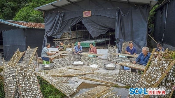8月3日,雖然仍下著大雨,四川省宜賓市珙縣孝兒鎮(zhèn)天堂村波浪二社的農(nóng)戶陳均華仍然一如既往地在蠶棚里忙碌著。“這個蠶棚目前有6戶農(nóng)戶在這里集中養(yǎng)蠶,今年我家領(lǐng)了43盒蠶種,一年可以養(yǎng)7批次,算下來還是有10多萬元收入?!标惥A一邊給蠶寶寶們喂食桑葉,一邊介紹道。