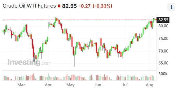 周一(8月7日),國際油價(jià)飆升至4月中旬以來的最高水平。