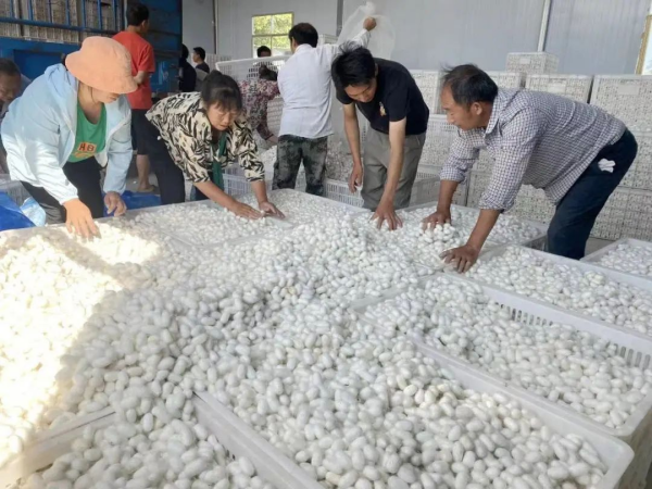 李夕英是該村的“養(yǎng)蠶能手”,過(guò)硬的養(yǎng)蠶技術(shù)讓她成為該村的“小蠶共育戶”?!拔医衲昵皟膳Q喂了5張蠶種,賣了15000元錢。”李夕英開心地說(shuō),她今年已幫周圍的村民們共育了三批小蠶,收入了18000元左右?!敖衲晷Q繭行情好,我養(yǎng)蠶再加上共育小蠶的收入,一年下來(lái),能收入60000余元?!睂?duì)于養(yǎng)蠶的效益,李夕英很知足。