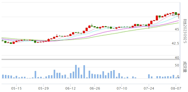 今日(2023年08月08日,周二)中國繭絲綢交易市場(chǎng)生絲指數(shù)微漲0.05%收于4816.98點(diǎn)。B絲(商檢4A級(jí)生絲):230825合約報(bào)平收于48.03萬元;230925合約上漲0.15萬元報(bào)收于48.03萬元;240325合約上漲0.06萬元報(bào)收于48.81萬元。
