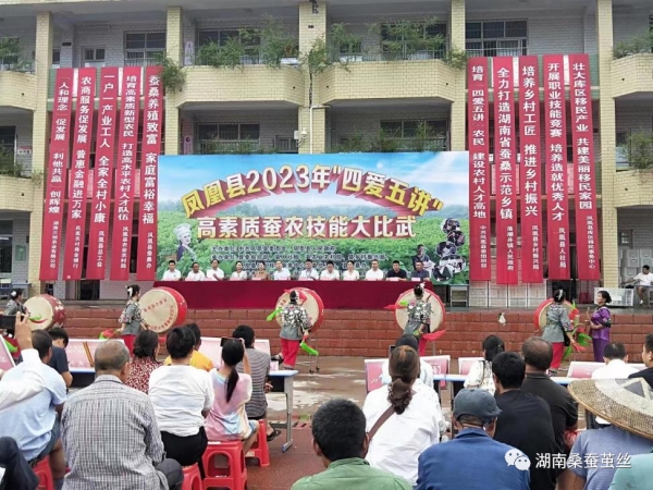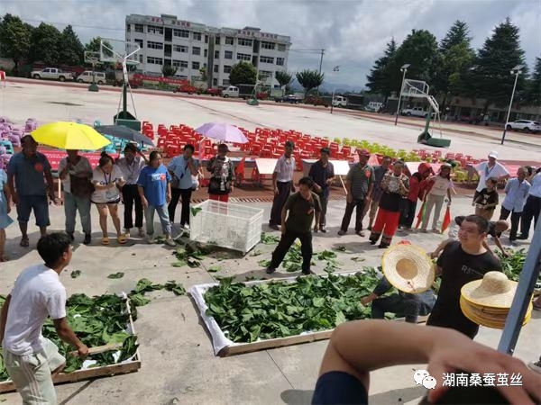 自2019年以來,湖南鳳凰蠶桑產(chǎn)業(yè)在鳳凰縣委的大力支持下得到了快速發(fā)展,達(dá)到了桑園面積上萬畝,養(yǎng)蠶鄉(xiāng)鎮(zhèn)近10個(gè),養(yǎng)蠶批次12批次,栽桑農(nóng)戶近1000家,蠶繭產(chǎn)值超3000萬元。2023年8月2日-4日,國家蠶桑體系崗位科學(xué)家趙愛春教授受鳳凰縣委組織部、縣蠶桑辦邀請到鳳凰縣蠶桑基地指導(dǎo)蠶桑生產(chǎn)。趙教授在縣組織副部長張常亮、蠶桑辦主任吳金澤、長沙試驗(yàn)站鳳凰基地負(fù)責(zé)人景艷梅等陪同下,深入蠶桑重點(diǎn)鄉(xiāng)鎮(zhèn)落潮井鎮(zhèn)實(shí)地考察指導(dǎo),先后考察了小蠶、中蠶共育室、大蠶標(biāo)準(zhǔn)化飼育大棚、蠶繭收烘站、三旭公司等,指出合作社與農(nóng)戶聯(lián)合推行“三段式養(yǎng)蠶”可縮短農(nóng)戶養(yǎng)蠶時(shí)間,做到“十天養(yǎng)蠶”,實(shí)現(xiàn)多批次養(yǎng)蠶與專業(yè)化養(yǎng)蠶,降低養(yǎng)蠶農(nóng)戶的養(yǎng)蠶風(fēng)險(xiǎn)性,提高養(yǎng)蠶質(zhì)量,增加蠶農(nóng)收入,利于蠶?;胤€(wěn)定發(fā)展;推廣抽拉式活動(dòng)蠶臺,配套自動(dòng)上蔟技術(shù),可降低勞動(dòng)強(qiáng)度,提高蠶繭質(zhì)量。特別是8月3日在鳳凰縣舉辦的2023年“四愛五講”高素質(zhì)蠶農(nóng)技能大賽上,趙教授受邀以“發(fā)展精品蠶桑,推進(jìn)鳳凰蠶業(yè)高質(zhì)量發(fā)展”為題作了專家報(bào)告。在此次技能大賽上開展了給桑、采繭技能表演比賽、蠶桑知識搶答,頒發(fā)了高素質(zhì)農(nóng)民證書、新型職業(yè)農(nóng)民證書,表彰了一批養(yǎng)蠶大戶、蠶桑合作社,開展了蠶農(nóng)優(yōu)惠政策宣傳。