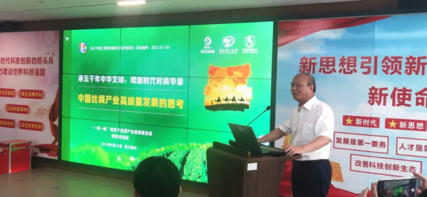 中國工程院院士、浙江理工大學陳文興校長作“中國絲綢產業(yè)高質量發(fā)展的思考”的主題報告