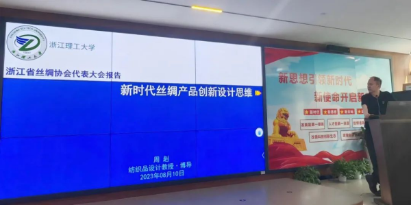 浙江理工大學周赳教授作“新時代絲綢產品創(chuàng)新設計思維”的報告