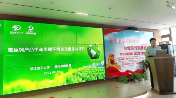 浙江理工大學王來力教授作“繭絲綢產品生命周期環(huán)境表現量化與評價”的報告