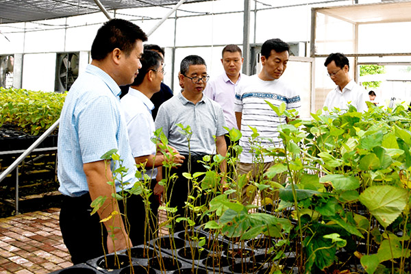調(diào)研組一行先后參觀考察了桑蠶原種繁育基地、桑樹種質(zhì)資源圃、小蠶自動化飼育車間、桑樹育苗大棚及桑種子制種園,聽取了蠶桑產(chǎn)業(yè)發(fā)展、基地建設以及種質(zhì)資源保護和創(chuàng)新等相關情況匯報??紫槲膶V西蠶桑產(chǎn)業(yè)的發(fā)展表示肯定,并表示以后要多交流經(jīng)驗,有效促進“三農(nóng)”工作更好發(fā)展。