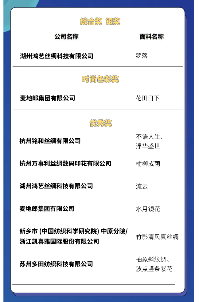 行業(yè)新聞丨多家絲綢企業(yè)在賽得利·2023中國時尚面料設計大賽獲得優(yōu)異成績