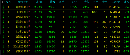 午盤收盤,國內(nèi)期貨主力合約多數(shù)下跌,甲醇(2352, -39.00, -1.63%)、玉米(2624, -42.00, -1.58%)、滬鋅、淀粉(2912, -67.00, -2.25%)跌超2%。漲幅方面,棕櫚(7518, -14.00, -0.19%)油、純堿、螺紋鋼(3682, -19.00, -0.51%)漲超1%。