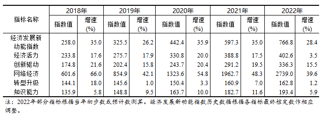 2018-2022年經(jīng)濟(jì)發(fā)展新動(dòng)能指數(shù)、分類指數(shù)及其增速